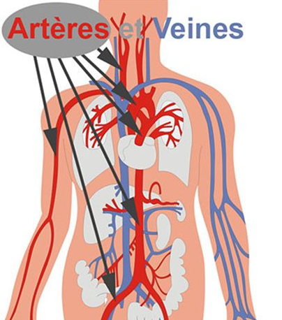 - Naturellement les conduits ou artères (chemin aller du sang, du coeur aux autres organes du coprs, au plus loin de la peau), leur dilatation, contraction, dépôts, parois